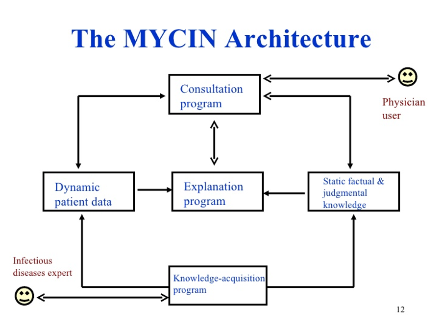 Following this, Feigenbaum’s team developed MYCIN, a system for diagnosing blood infections and recommending antibiotic treatments. MYCIN introduced uncertainty reasoning and rule-based reasoning, enhancing AI's ability to handle complex tasks.